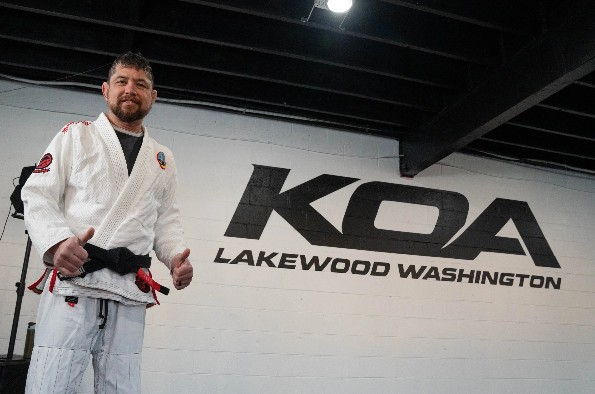 Professor Professor Jesse started his jiu jitsu journey 11 years ago while watching his daughter train, wanting to better understand the sport so he could support her growth. What began as a way to help her quickly turned into a passion of his own. He fell in love with the endless learning, and years later, he’s still on the mats growing, evolving, and sharing that same passion while helping lead both KOA’s kids and adult classes.